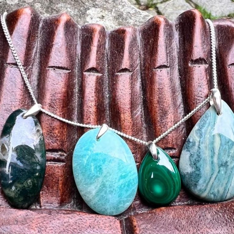 Les pierres sont taillées, poncées et polies. Puis elles sont simplement percées. Une bélière en Argent 925 est pincée dessus. Le pendentif peut alors être porté avec une chaine, ou un cordon.